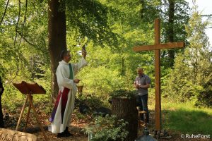 Pünktlich zum fünfjährigen Bestehen wurde die neue Andachtsstätte Nord fertig und eingeweiht. Die große Nachfrage war ausschlaggebend für die Erweiterung einer weiteren Andachtsstätte. Der neue Platz mit schönen Holzbänken ist über einen kürzeren Weg vom Parkplatz und auch mit Rollstuhl und Rollator gut zu erreichen. Gerade bei schönem Wetter bietet sich dieser lichtdurchflutete Ort ideal an. In diesem Bereich stehen weitere über sieben Hektar Waldfläche als Erweiterung an. Mit einem ökumenischen Gottesdienst, den Pastorin Annemarie Testa von der evangelischen Kirchengemeine Bockhorn und Diakon Klaus Elfert von der katholischen St. Bonifatius Gemeinde gemeinsam gestalteten, wurde die Andachtsstätte Nord feierlich eingesegnet. Musikalisch begleitete Sören Suhr den Gottesdienst.